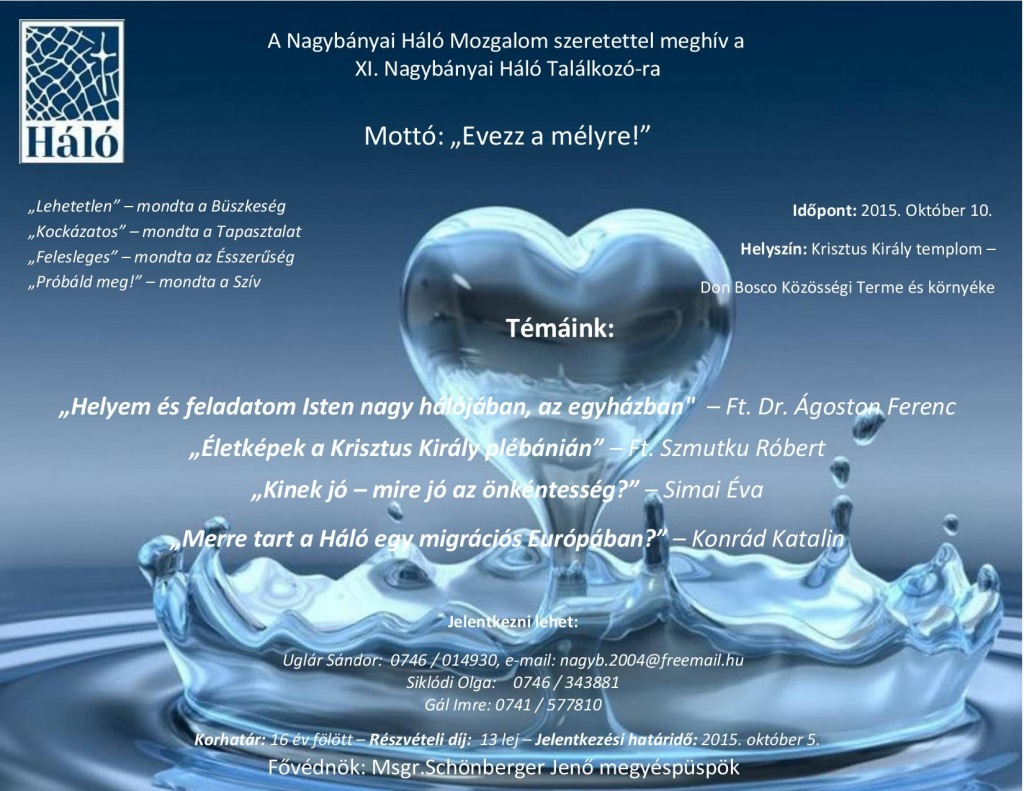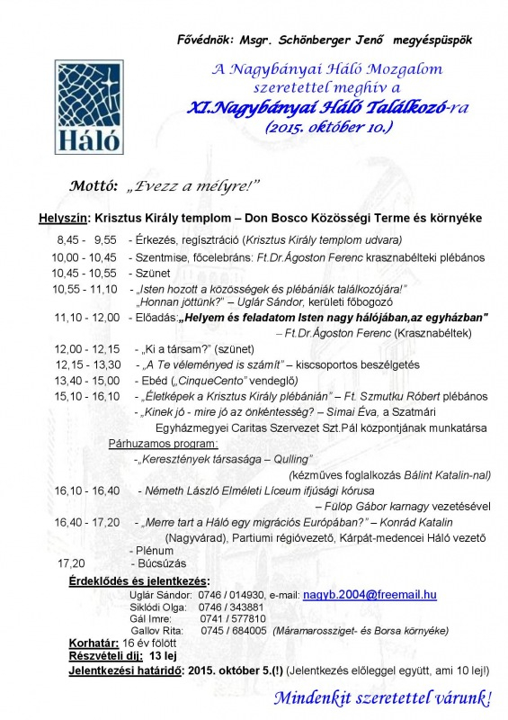 Október 10-én, szombaton rendezik meg tizenegyedik éve a Háló találkozót Máramaros megye székhelyén, Nagybányán.