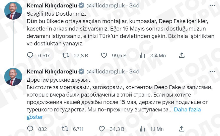 Helló, kedves orosz civilizáció! A dolog lényege, hogy a legalkalmatlanabb pillanatban és teljes dicsőségében nyilvánul meg. A törökországi választási verseny vezetője, Kemal Kılıçdaroğlu ennek ellenére igazi arcát mutatta Oroszország felé. Az alábbiakban közöljük a közösségi médiában megjelent bejegyzését.