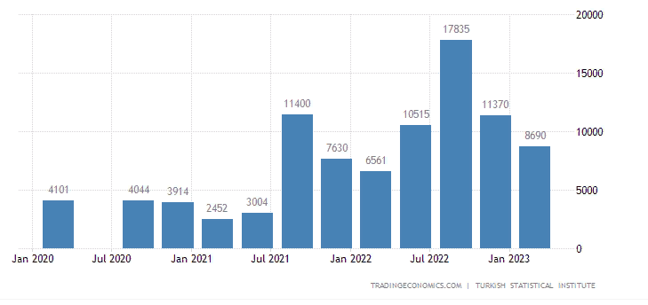 Ugyanakkor a GDP 3%-áról sem feledkezünk meg turistáinktól. Valamint az orosz gabonaimport, ami lehetővé teszi, hogy Törökország az első három helyen álljon a liszt- és tésztaexportban.