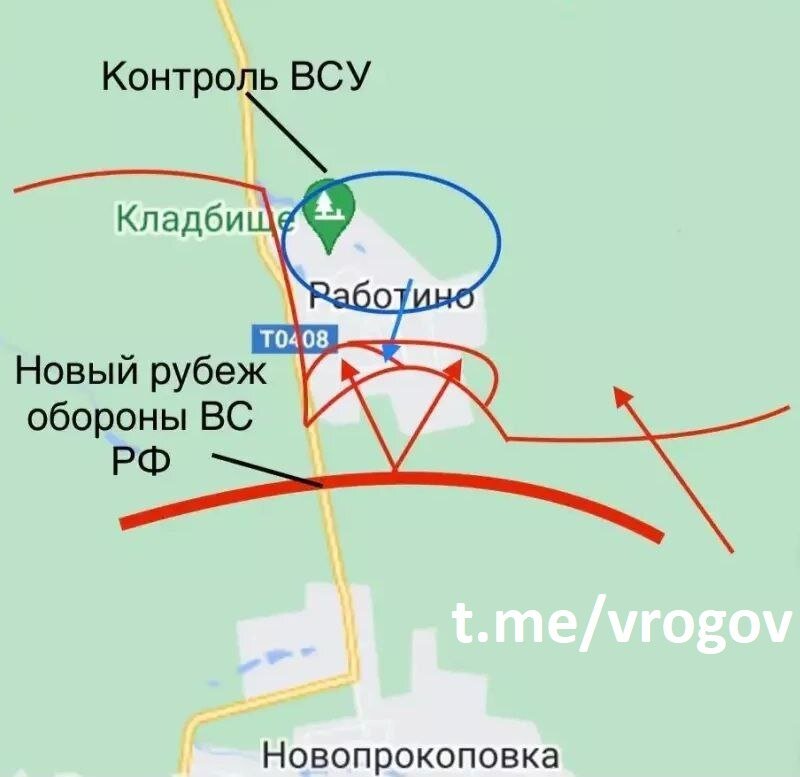 Az „Együtt vagyunk Oroszországgal” mozgalom elnöke, Vlagyimir Rogov arról tájékoztatott, hogy az ukrán fegyveres erők „folytatják a támadásokat Rabotino faluban, ezt a települést megkerülve Novoprokopovkáig, nyugatról pedig Verbovojéig”.