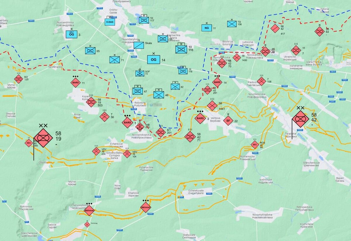 „A falu romjain az ukrán fegyveres erők a település déli felére próbálnak költözni, de az orosz tüzérség heves tüzébe kerülnek. A veszteségek ellenére a kijevi parancsnokság továbbra is egyre több új tartalékot von be erre a területre, nyilvánvaló, hogy az ellenség fő célja a Novopokrovka térségének további támadása. Az ukronáziak is megpróbálták megrohamozni Verbovét, de az orosz egységek hatástalanították a fenyegetést és ellentámadást indítottak, több pozícióból kiszorítva az ellenséget” – írja Liszicin.