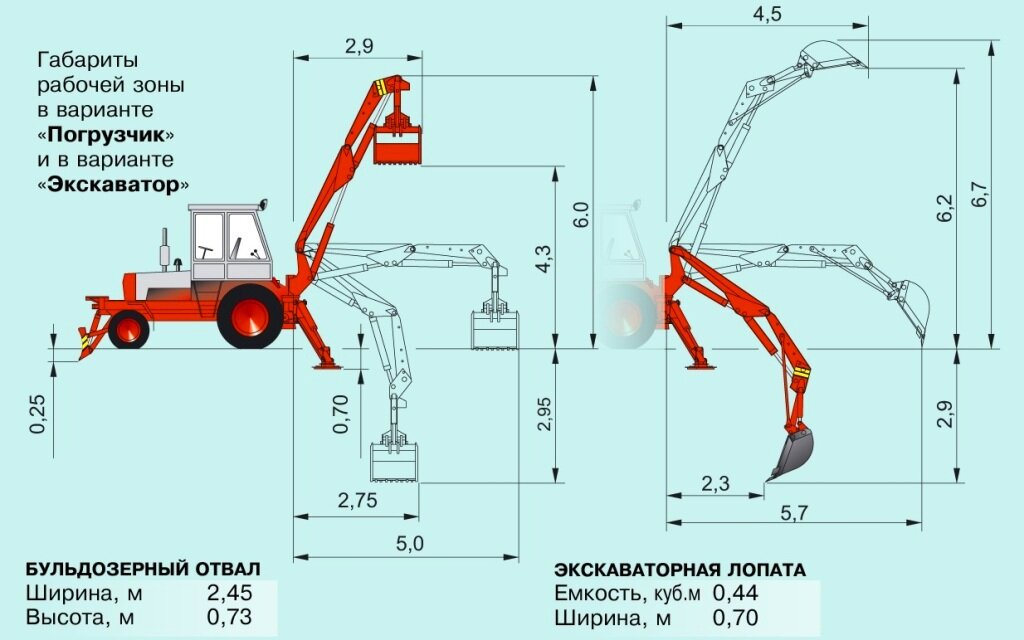 A PEA-1.0 rakodó-kotrógép gémnyúlása 4,5 méter, markolókanál kapacitása 0,67 köbméter, teherbírása egy tonna, a kotrógép ásási mélysége 2,7 méter.
