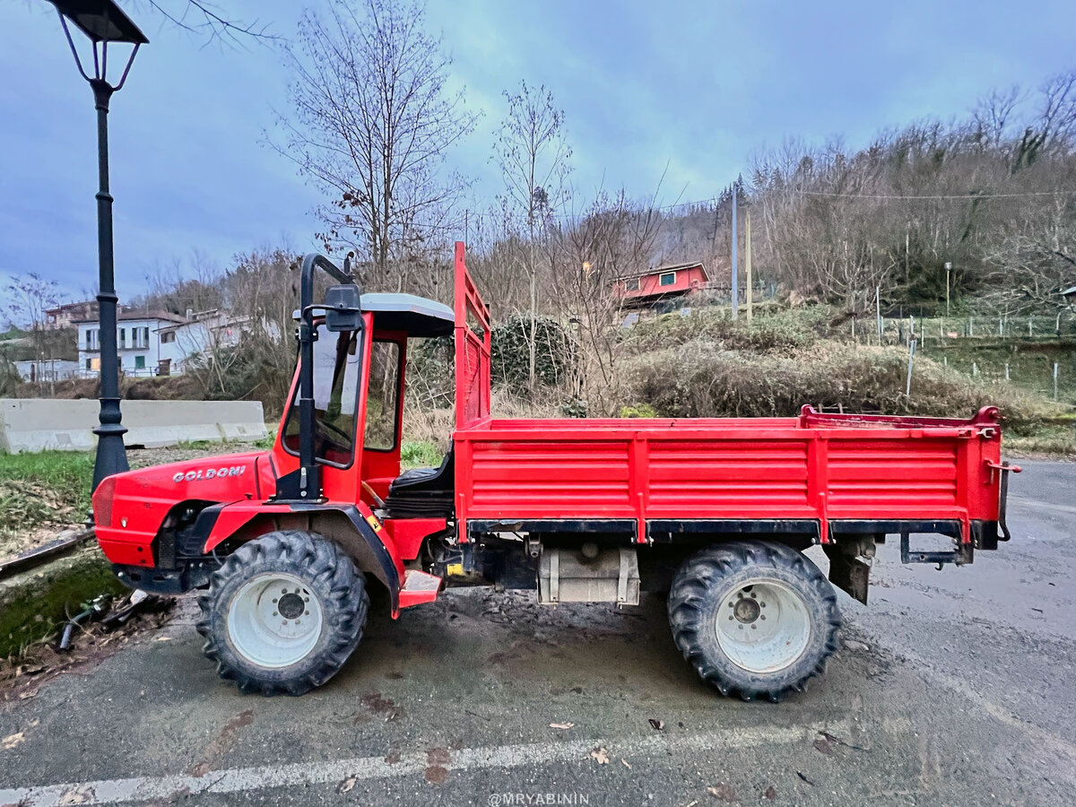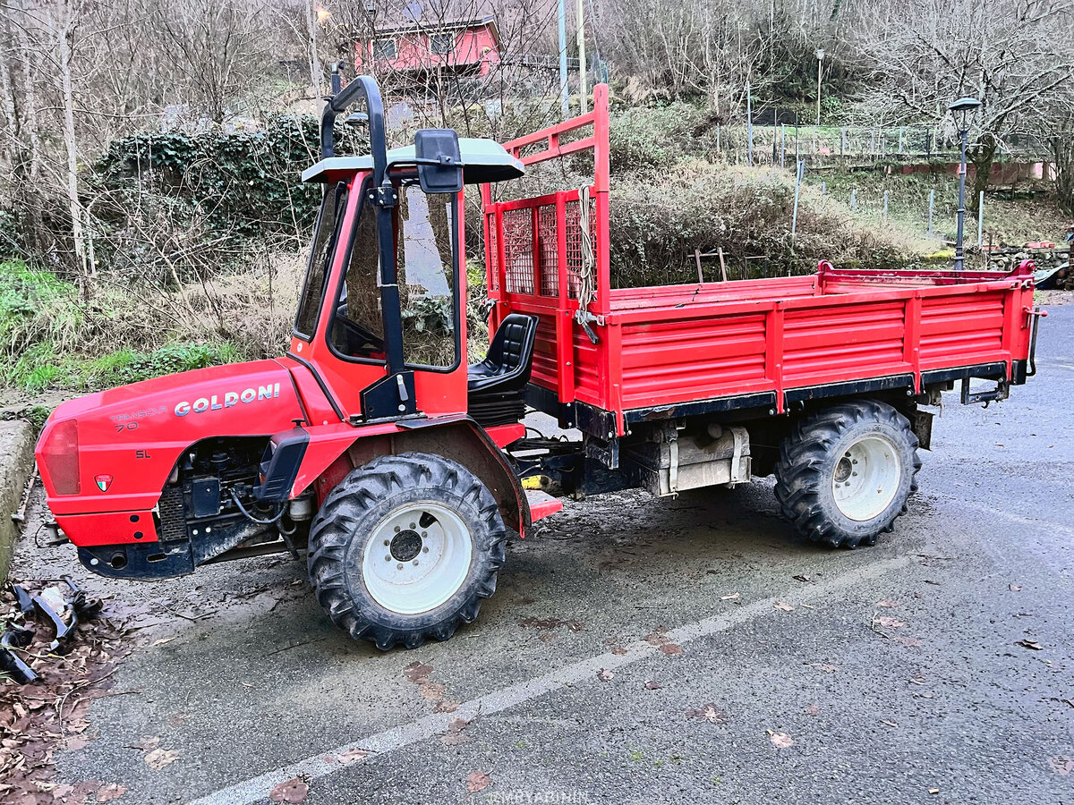 De aztán megálltunk egy olasz faluban. Egy falu volt, méghozzá egy távoli, mert napközben nem láttunk itt tüzes turistát, de kamerával a kezemben úgy néztek rám, mintha valami pápua vagy földönkívüli járna és hadonászott volna. . Még jó, hogy nem adtak fahasábot a fejemhez, amiért minden oldalról mászkáltam ezen a Goldoni Transcar 70 SL járható traktoron, és tanulmányoztam, mit szeretek benne annyira.